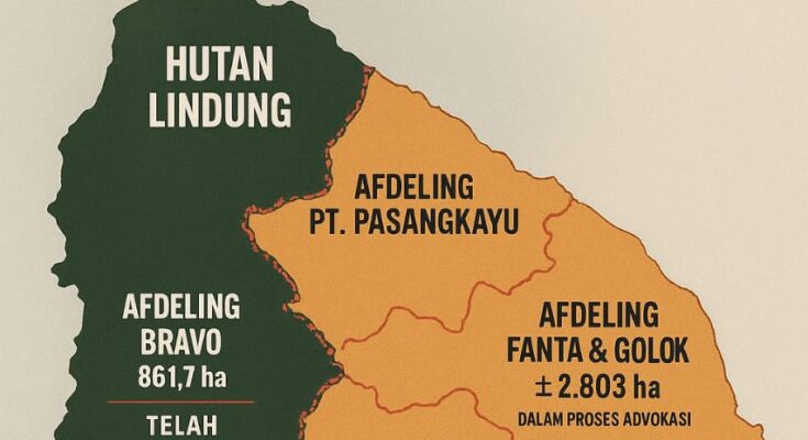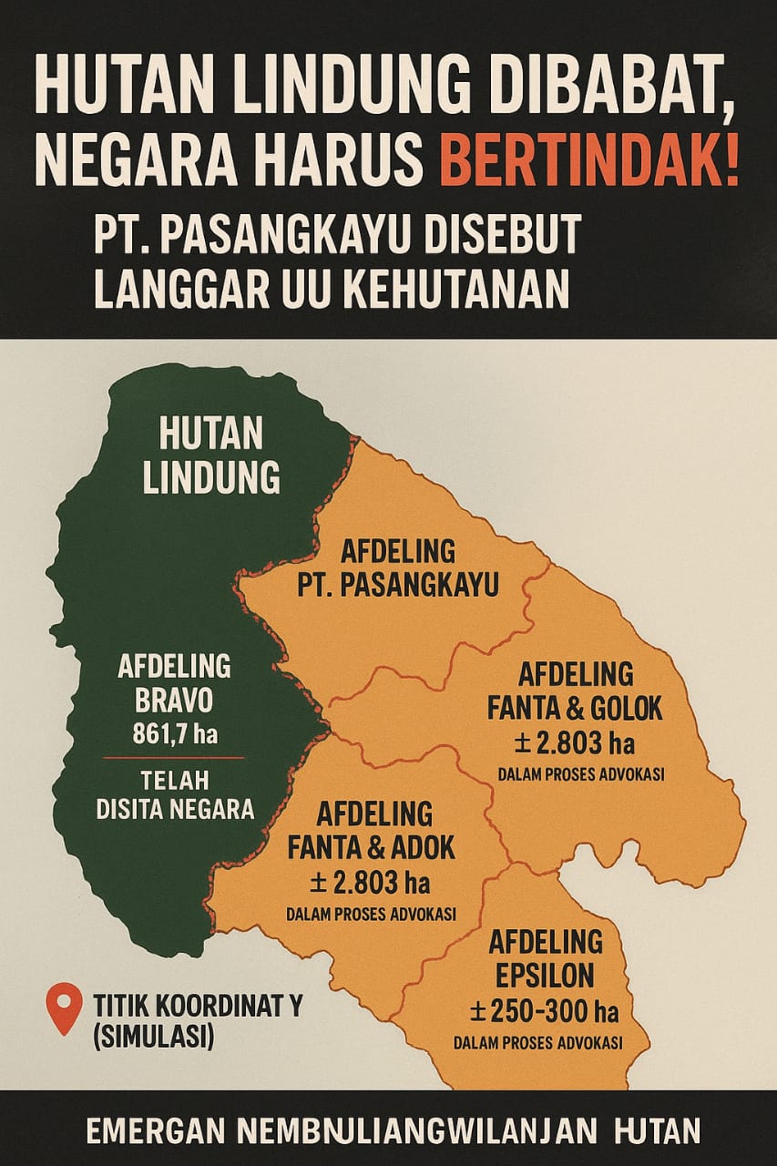 “Bayangkan, tiga puluh tahun perusahaan ini beroperasi di atas lahan negara dan hutan lindung. Mereka bebas menggunakan alat berat, menanam sawit di tepi sungai, bahkan melakukan replanting tanpa izin perpanjangan,” ungkap Eliasib.
