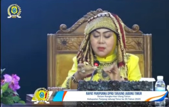 Dalam sambutannya, Ketua DPRD Hj. Zilawati, SH menyampaikan rasa syukur atas usia ke-26 Kabupaten Tanjung Jabung Timur yang telah menunjukkan kemajuan signifikan di berbagai sektor. Ia menilai, capaian pembangunan ini tidak lepas dari kerja sama seluruh elemen masyarakat dan kepemimpinan daerah dari masa ke masa.