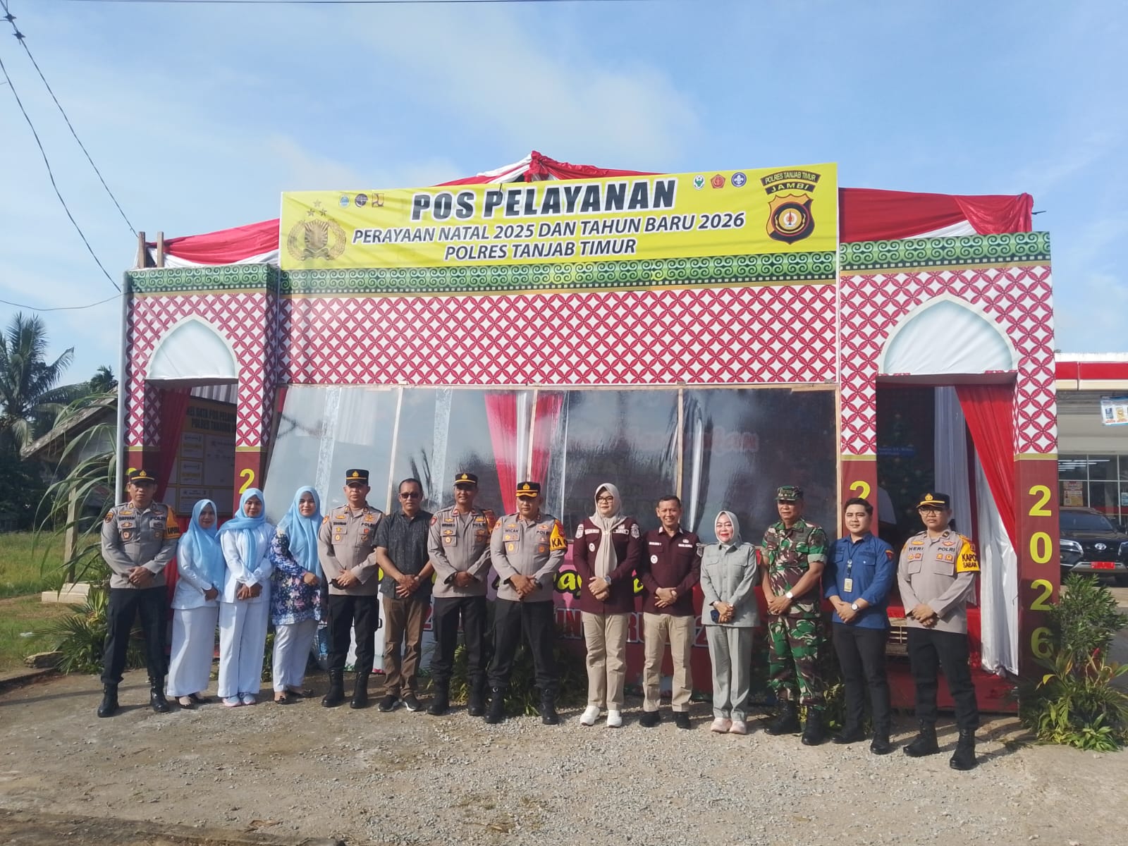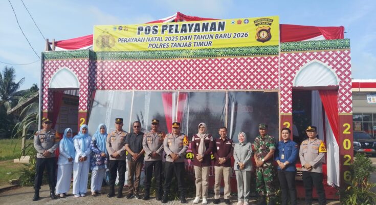 Infobrita.com|Tanjab Timur – Pemerintah Kabupaten Tanjung Jabung Timur menunjukkan komitmennya dalam menjaga keamanan dan kenyamanan masyarakat selama perayaan Natal 2025 dan Tahun Baru 2026. Bupati Tanjab Timur bersama Wakil Bupati didampingi unsur Forkopimda serta sejumlah Organisasi Perangkat Daerah (OPD) melakukan peninjauan langsung ke sejumlah Pos Pelayanan dan Pos Pengamanan Natal dan Tahun Baru (Nataru), Kamis (25/12/2025).